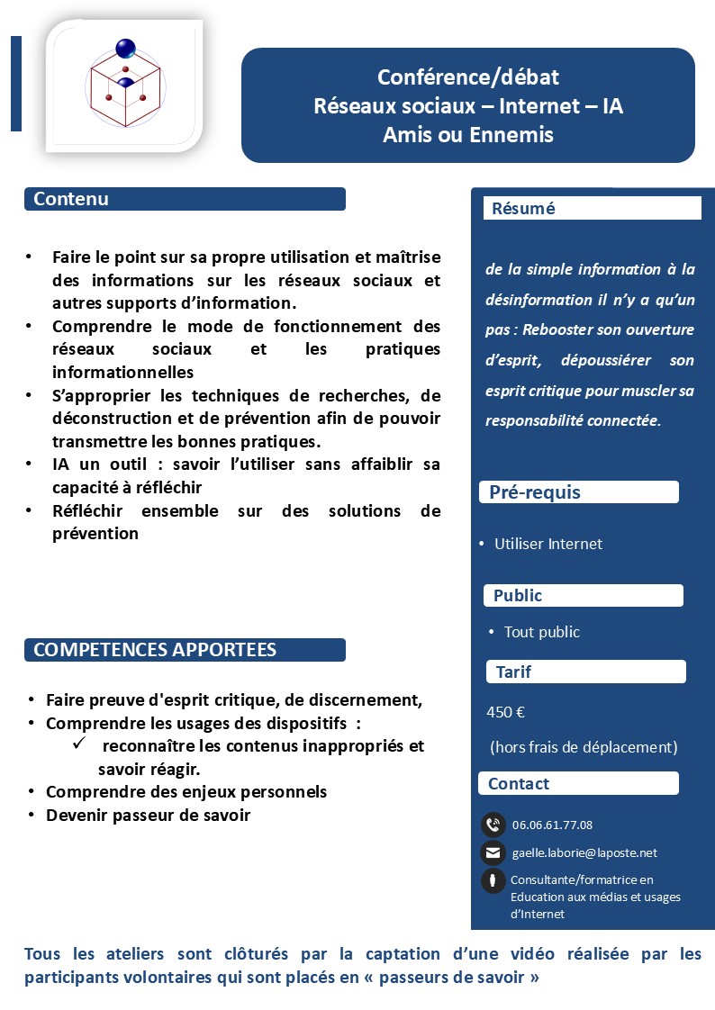 les sujets abordés sont présentés sous deux formes Ateliers ou Conférences