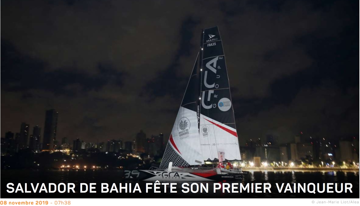 13ème jour Transat Jacques VABRE 2019: arrivée du premier MULTI50 Groupe GCA le vendredi 8  novembre à 05h49mn4s... @TransatJV_fr #TransatJV