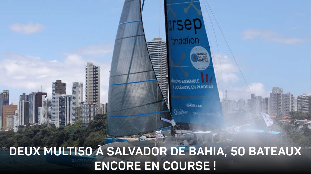 En franchissant la ligne à 05h 49mn 41s (heure française), Gilles Lamiré et Antoine Carpentier s’offrent une superbe victoire à Salvador de Bahia dans la catégorie des Multi50. Derrière eux, 51 bateaux convergent vers le Brésil avec toujours Apivia en éclaireur chez les IMOCA et Crédit Mutuel chez les Class40.
