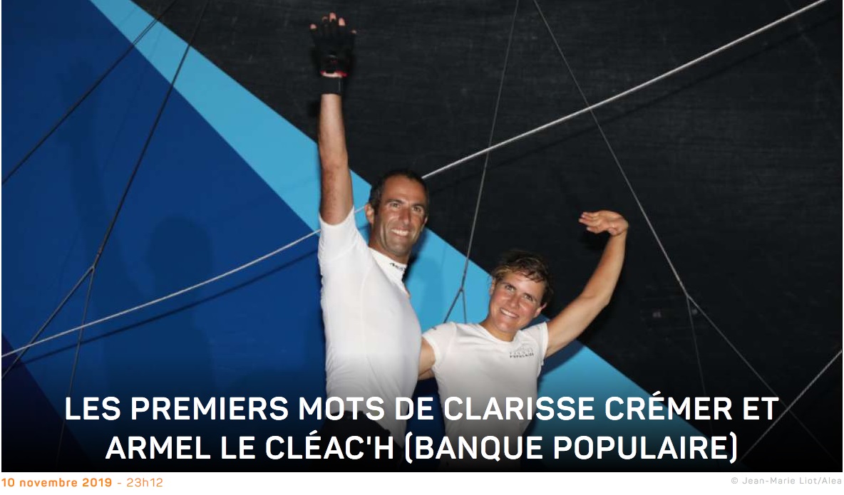 Armel : C’était bien, il y a eu du jeu en termes de stratégie, on est arrivé à tirer les bons bords, jusqu’à la sortie du Pot au noir. Notre route météo était pas mal, ce qui nous a permis de sortir en deuxième position du Pot-au-noir. Ensuite, c’était évidemment plus compliqué contre les foilers, il nous manquait un turbo ! Avec Banque Populaire, nous avions plusieurs objectifs au départ : d’abord, l’ambition que Clarisse apprenne sur le bateau et comme on a eu plein de conditions différentes, je crois que ça a été très profitable. Ensuite, on  voulait terminer premier équipage à dérive. C’est fait. Premier équipage mixte, c’est fait. On aurait bien voulu le top five, mais c’était difficile de résister aux avions de chasse qui nous rattrapaient. Il faut rester philosophe. Notre bateau a presque 10 ans et il faut rester réaliste. C’est bien aussi pour Clarisse de se lancer sur le Vendée Globe sur un bateau comme celui-là qui est fiable et plus facile que les derniers foilers. Elle a vu comment on pouvait mener le bateau à 100% et elle sait jusqu’où on peut arriver. Après elle se gèrera et j’ai confiance en elle.
