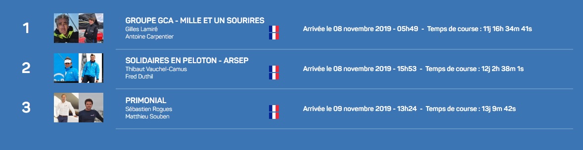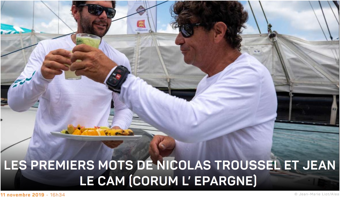 Nicolas : On est content d’arriver, merci pour l’accueil ! On a passé une transat plutôt sympathique avec Jean. On s’est battu avec nos armes et on est arrivé à mettre des bateaux plus récents derrière. On s’est découvert avec Jean et notre binôme a bien marché. Après, personnellement, c’est un bout de la qualification pour le Vendée Globe ce qui n’est pas anodin. C’est aussi un podium dans la course des bateaux à dérives. Et puis sur l’eau, on s’est bien battu, on a fait de belles choses. J’espère que la course était bien à vivre de l’extérieur.
