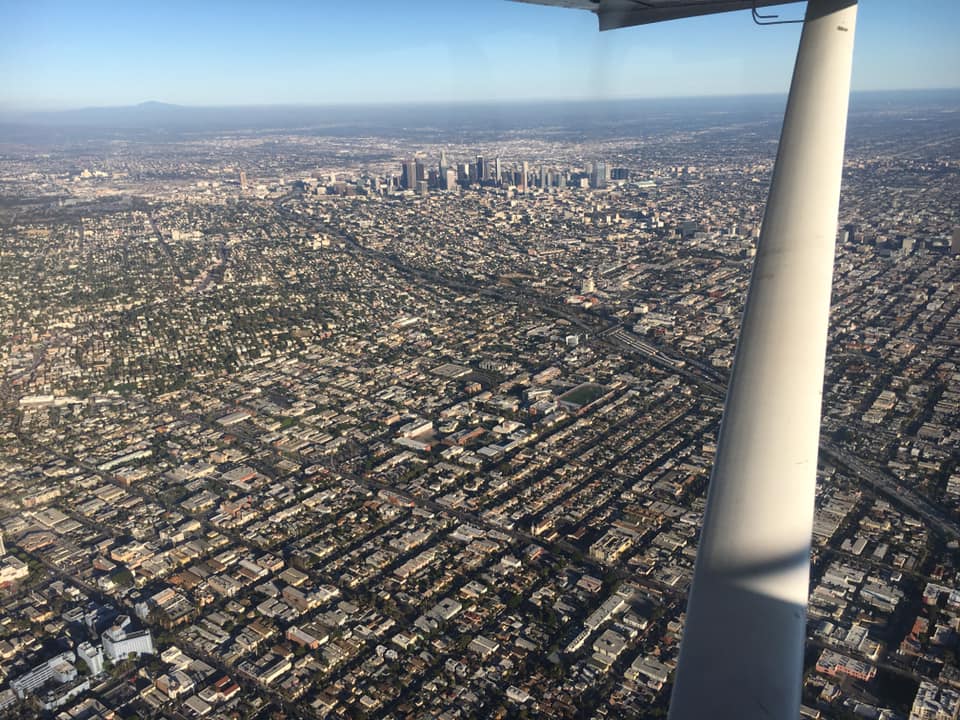 Laurent est seul dans cet Aeronca de 1949, il traverse la ville de long en large à 1000 ft sol depuis un peu plus de deux heures, le soleil s’est couché depuis une vingtaine de minutes sur les montagnes au nord de Malibu , il aurait pu continuer encore un peu et longer la côte sur le PCH mais va savoir pourquoi une petite voix insiste pour faire demi-tour maintenant ...