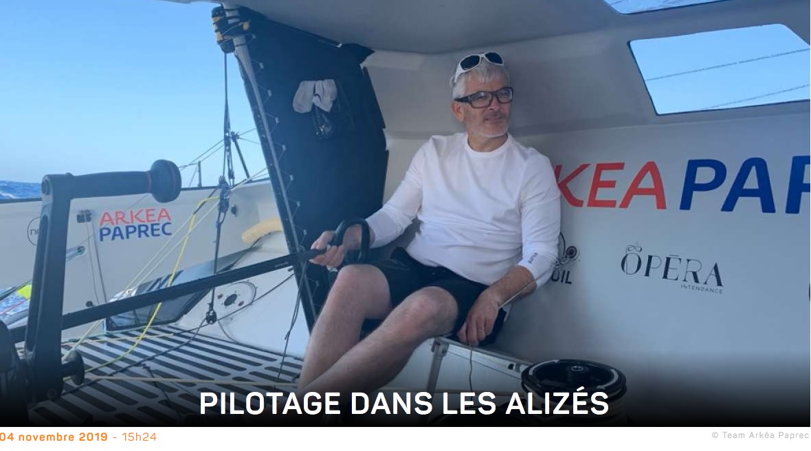 Les alizés, contrairement à l’image d’Epinal de vents constants et établis, ne sont pas de tout de repos ! Alors que nous appelions Sam Davies (IMOCA Initiatives-Cœur) ce midi pour la vacation, Sam et Paul ont subi un joli départ au tas ! Comprenez que le vent de nord-est est monté d’un coup en puissance, faisant sortir le bateau du cap auquel le pilote automatique devait obéir. C’est ce qu’on appelle dans le jargon : une sortie de piste…